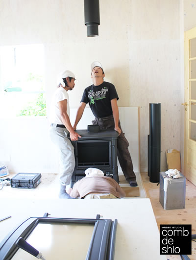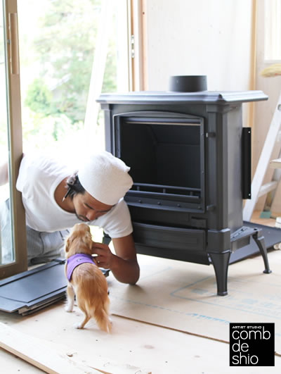 そして、やっと薪ストーブがアトリエに鎮座いたしました。