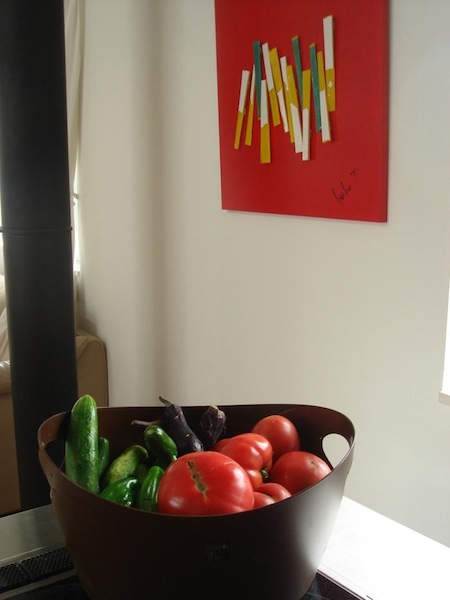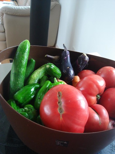 そこで、昨夜は、自己流簡単ラタテューユを作りました。鶏肉は入れずの野菜だけのラタテューユ、でも新鮮な野菜そのももの味がホント美味しい。野菜をたくさん食べるには、このラタテューユがお勧めです。温かくてももちろん、美味しいですが、この季節、冷やしていただくともっと美味しいですね。