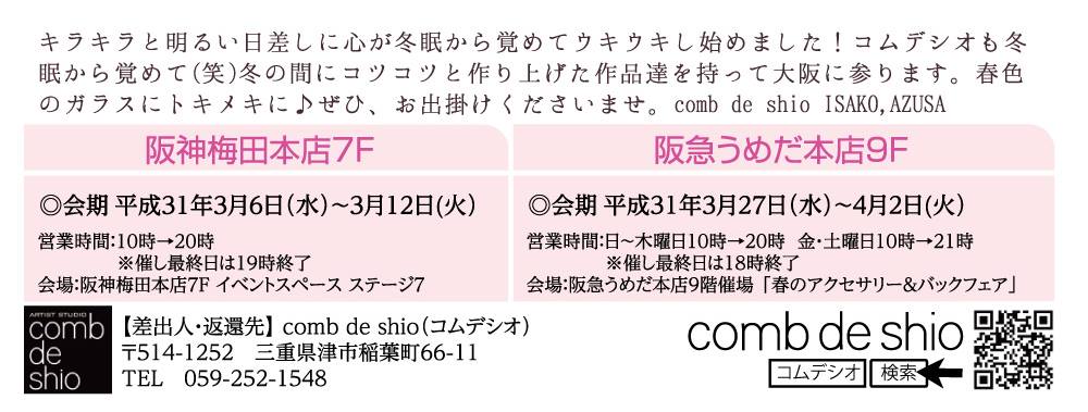 コムデシオも冬眠から覚めて、冬の間にコツコツと作り上げた作品を持って、大阪に参ります。