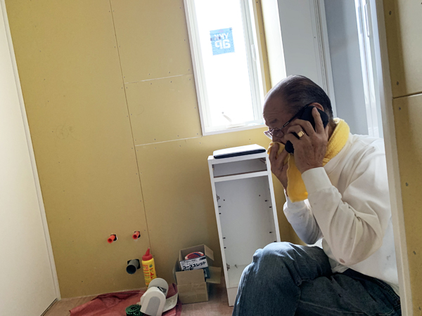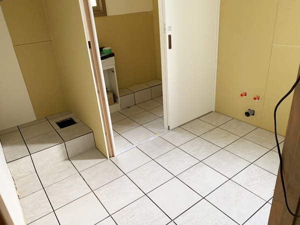 そこで、今日は、タイル職人さんが来て、仕事してもらってます。