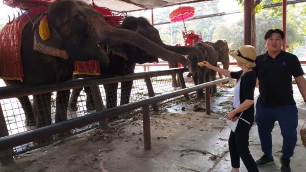 本物の子象です。お札を鼻にあげると屈んでくれます。笑