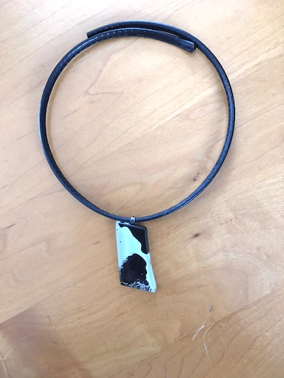 私は、その当時、サンプルで制作した革チョーカーを今も使い続けています。なんか手放せないのです。本当によく着けています。