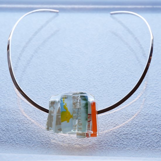 ISAKOシリーズ・1点ものガラスのシルバーチョーカー(細Vタイプ)|「flower 」