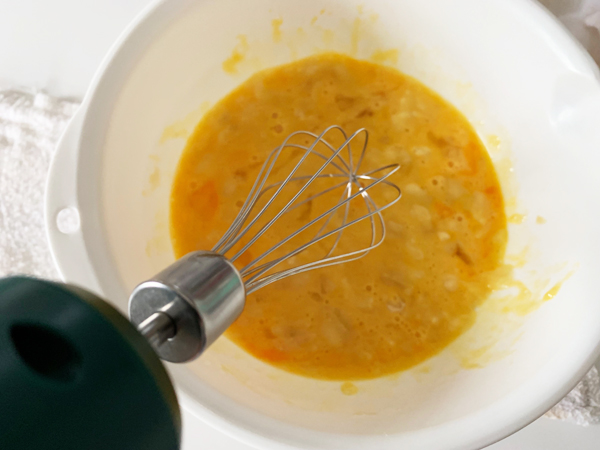 少しだけ私は、ハンドミキサーを使いますが手で混ぜても問題ないです。