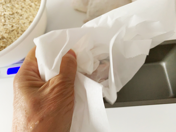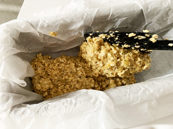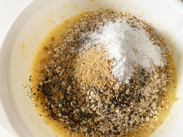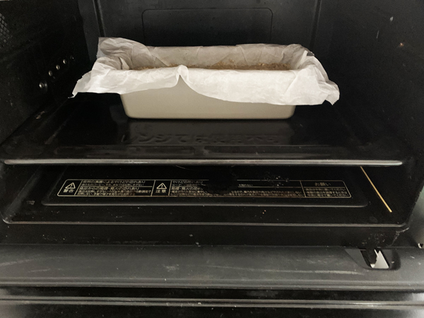 混ぜてしばらくおく。オートミールに卵などがなじむようにする。その後はもう焼くだけ