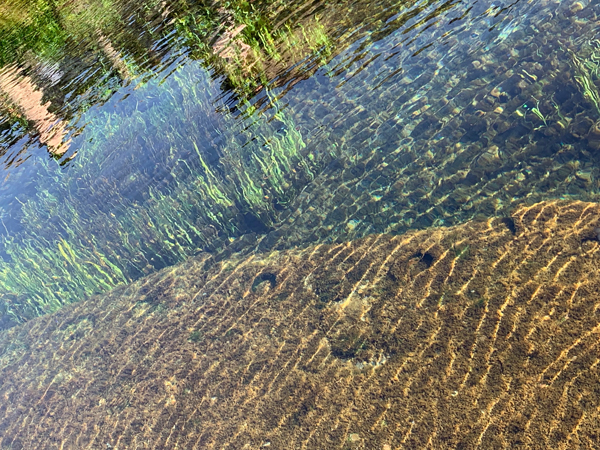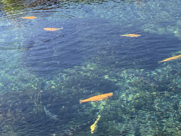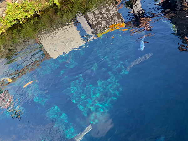 その日の自然環境によって、天気、気温、光、鯉の泳いでいる動きですら、水面の色や様子は変化している、、、その美しさ。正に自然はアートですね。