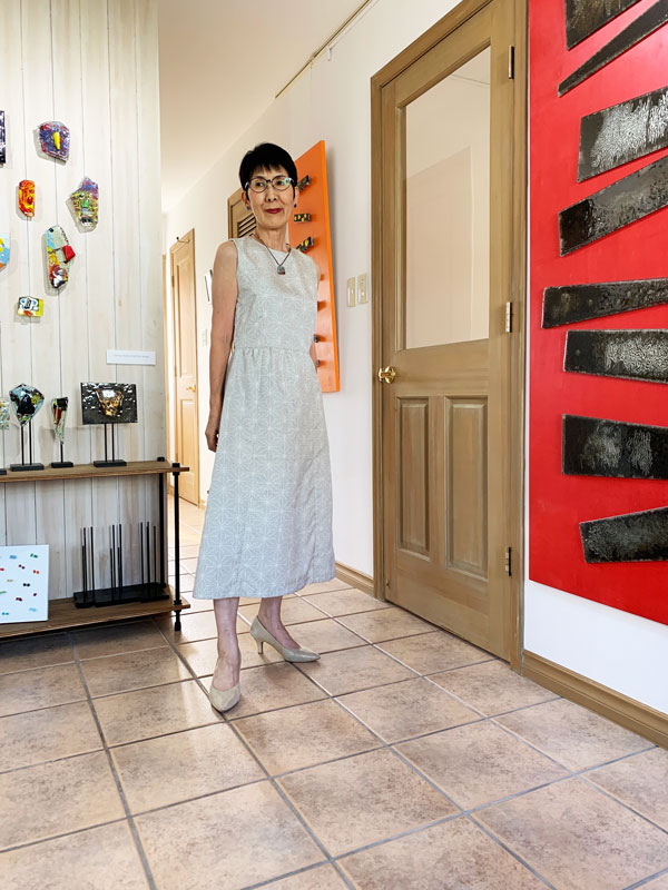 着物を洋服らしいデザインで作れることが証明されたので、次回は、秋に向かって、自分の着物を同じデザインで作ることにしました。