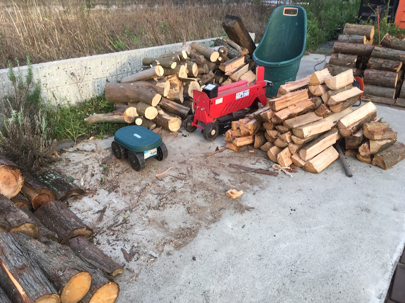 さて、午後は、ずーと気になっていた薪ストーブ用の薪割りを夕方までしました。