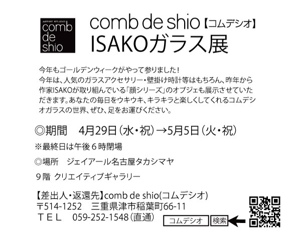 今年も、ゴールデンウィークにJR名古屋タカシマヤ9階クリエイティブギャラリーにて、展示会を開催致します。