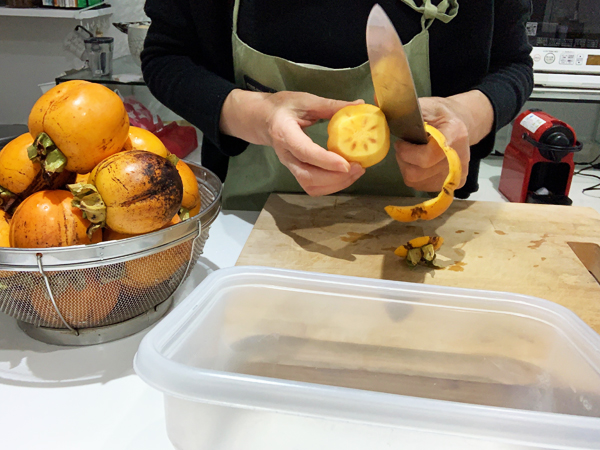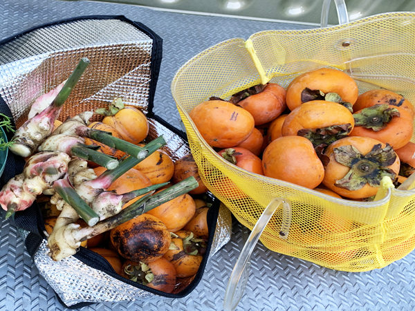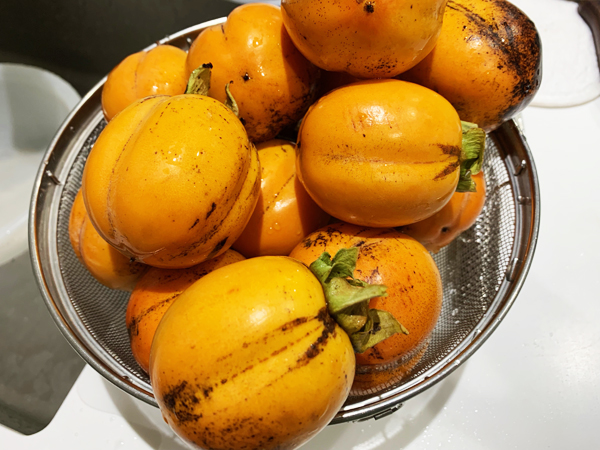 J子さん夫妻からたくさんの渋柿と甘柿をもらいました。
