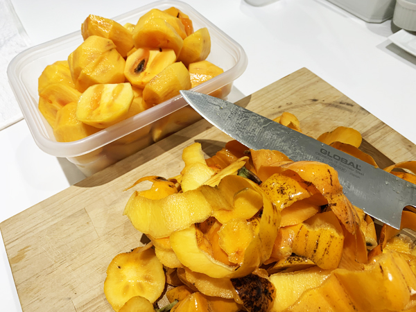 そこで、初体験、、、干し柿にしようと皮剥き開始。