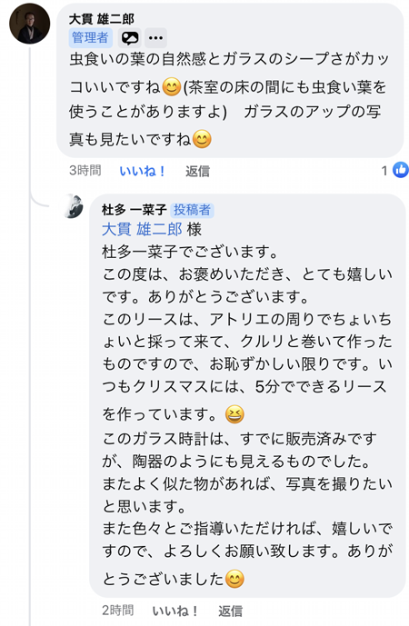 建築デザイナーの大貫雄二郎氏から私の掲載した写真にリアクションのハートマークを頂き、下記のコメントがありました。