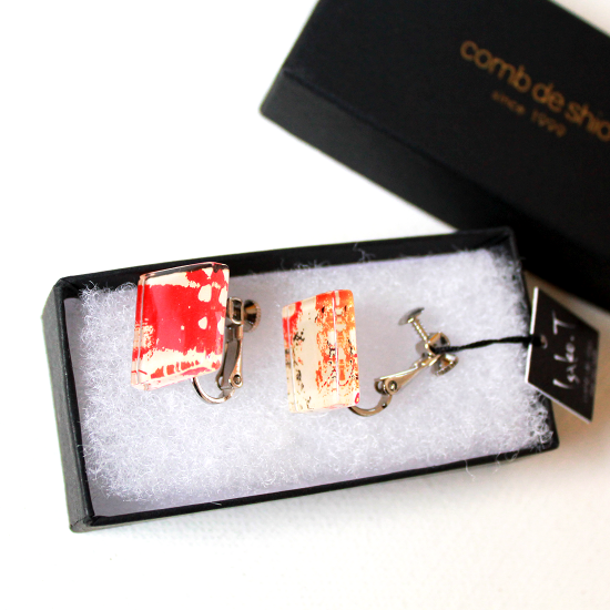 1点ものガラスイヤリング|オレンジメモリー|箱付