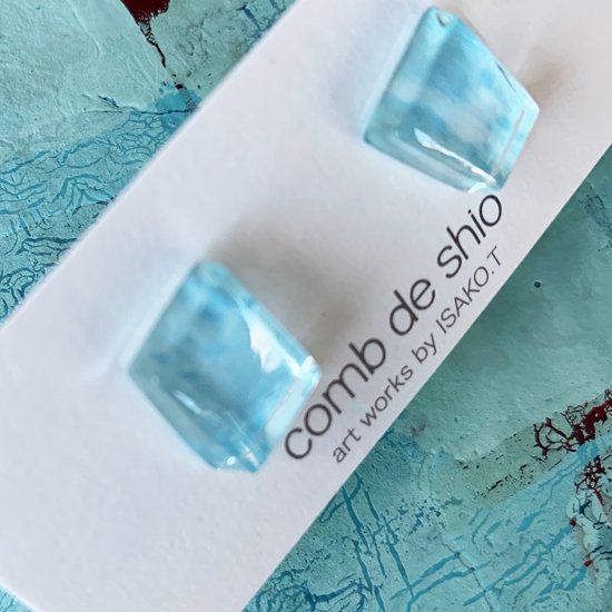 伊勢志摩シリーズ・1点ものガラスピアス【Mサイズ】「海/Sea」|箱付