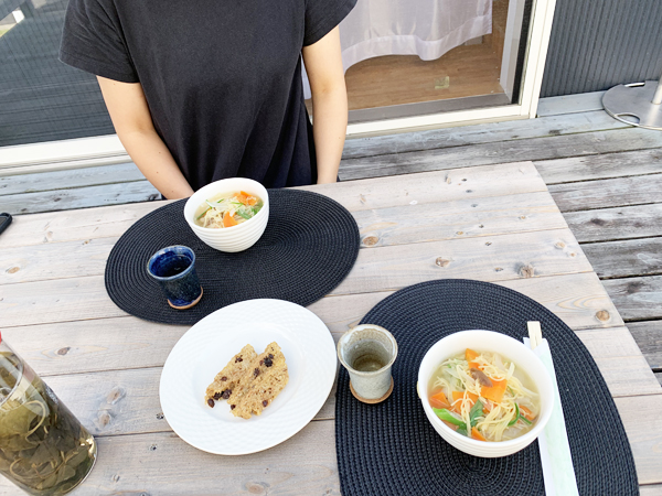 デッキでお隣のYさんと昼食を楽しみました。