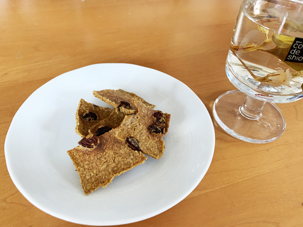 オートミールとカレーとレーズン混ぜて薄く伸ばして、オーブンで焼いて自己流スナックを作ってみました。