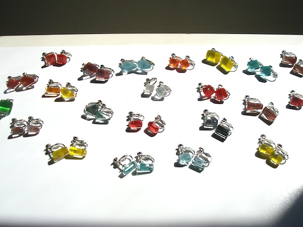 見ているだけでも何とも魅力的なキレイさ、そして着けると、こんな小さいガラスですが、その方をキレイにしてくれます!肌の色もキレイに見えるし、本当にその方を魅力的にしてくれます。これは、展示販売などで、お客さまに着けていただく度、Azusaも私も感じる事です。このような場面を見られるのが私たちにとって、すごくうれしいことです。