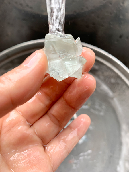 水の中から出して、ひとつひとつ水洗い。