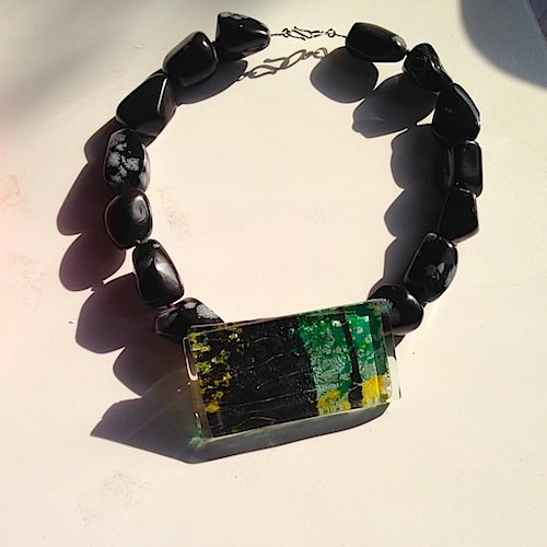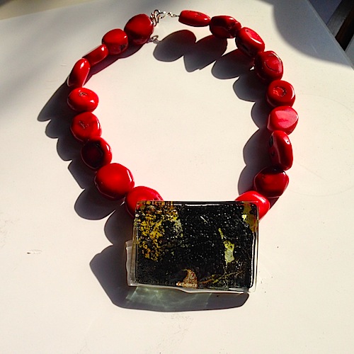 実は、このガラスは、パネルの作品にしようと思っていたのですが、春の陽気に誘われて、アクセサリーに使いたくなりました。