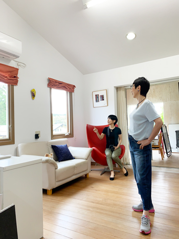 コムちゃんとIsakoさん、制作の間の休憩で、何やらお話中。