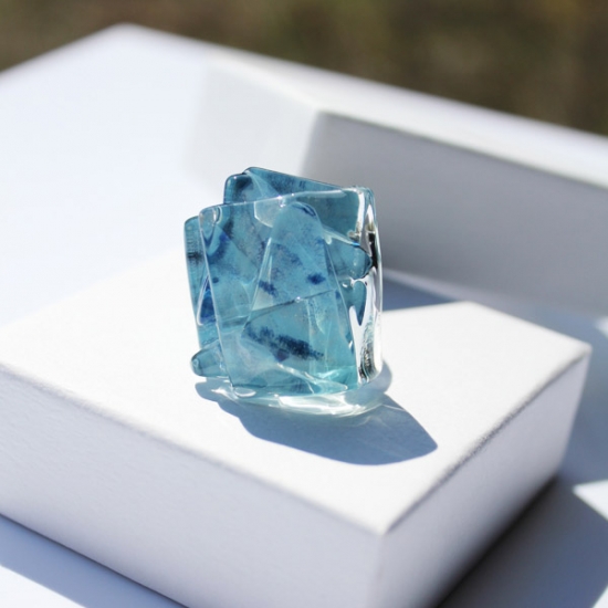 1点ものガラスのIsakoリング|blue blue sky|箱付