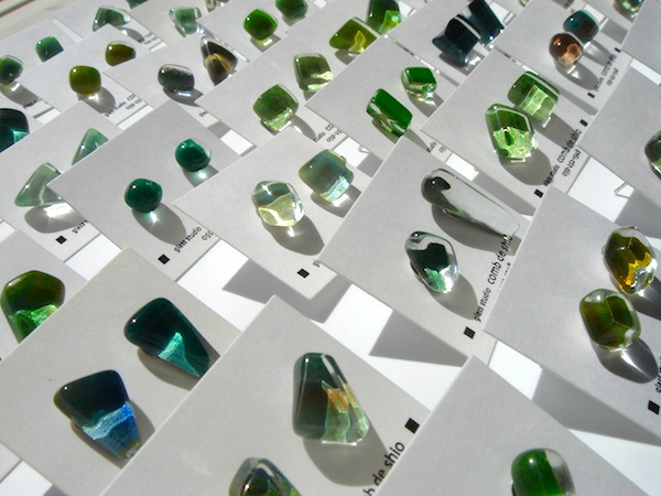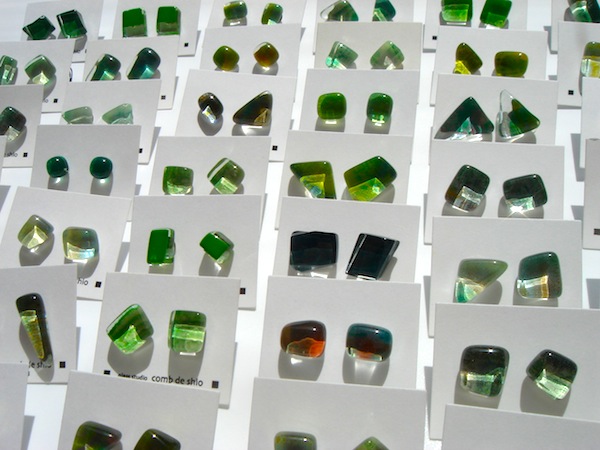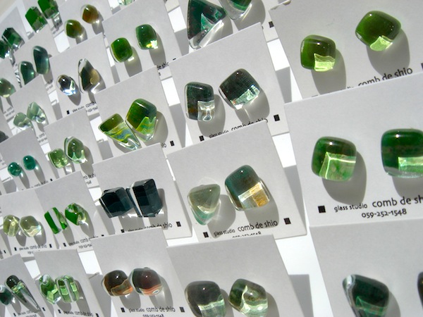 そこで、これまでに制作した緑色のピアスを並べてみました。