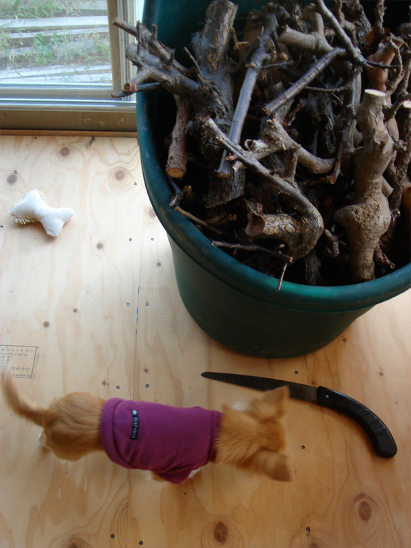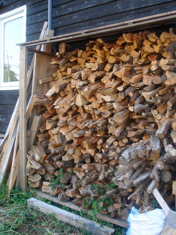 さて、そこで、今日は、冬支度、、、外に積んである薪を使う分だけ部屋の中に入れました。