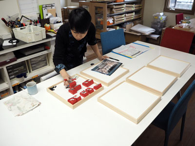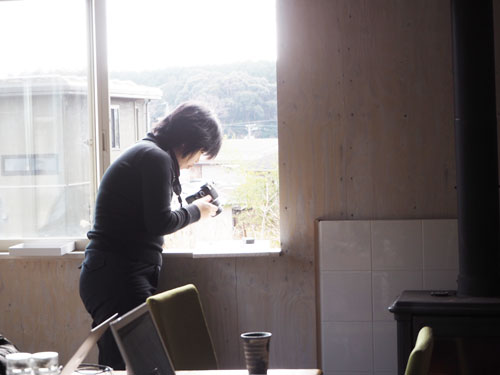 Masumiちゃんが、オンラインショップ用の写真を撮影中。