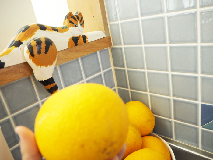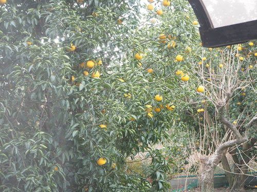 実は、こちらは、お隣さんからの頂き物。立派に実る様子を見て、柑橘類大好きIsakoさんが、毎日、窓越しに「食べたい!食べたい!」と、念力をかけて落とした、はっさくちゃんたちです。