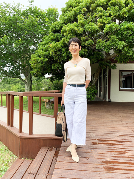 丈を短くして、足首を見せる。そして、こんな風に靴を変えると雰囲気がガラッと変わる。