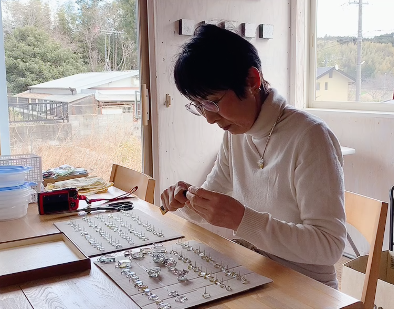 本人曰く「面倒臭がり屋のおしゃれさん」。ガラスの美しさに留まらず、簡単に、楽に着けられるアクセサリーへの配慮やアイデアも、Isakoの作り出すアクセサリーの人気の理由のひとつ。