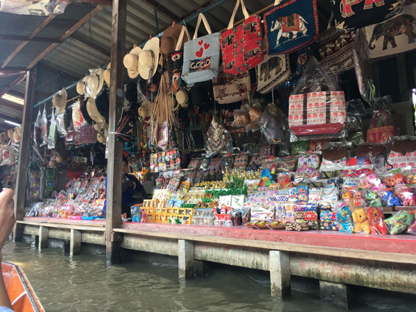 小さなボートをチャーターして、川沿いに犇めき合うお店でショッピングを楽しむ「水上マーケット」にも連れて行ってもらいました。