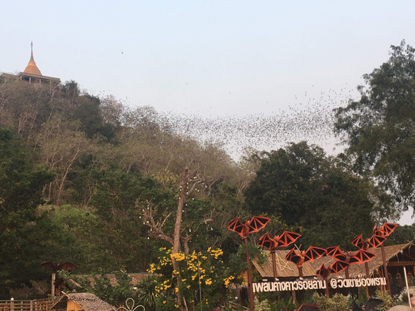 夕方になると餌を求めて一斉に飛び立つコウモリたち。