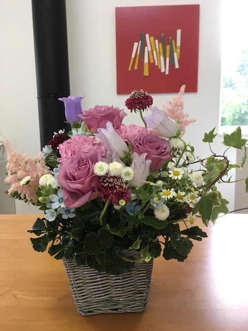今年は、こんなお花と黄色いスリッパを娘夫婦からもらいました。