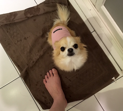 お風呂を出ると、コムちゃんが必ず、来てくれます。まるで、私が無事にお風呂から上がったかどうかを確かめるごとく(嬉 笑)
