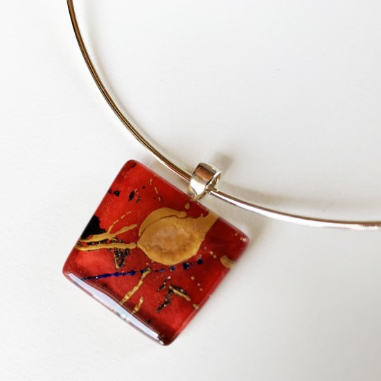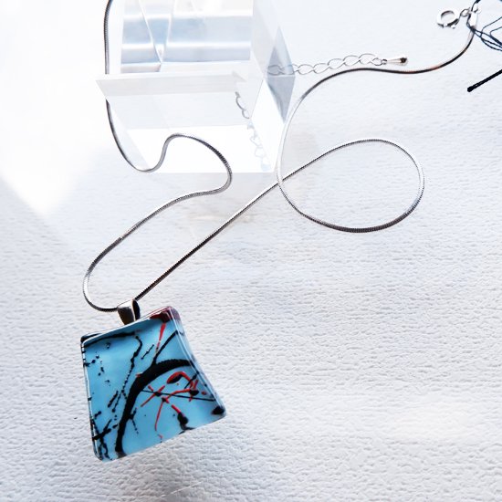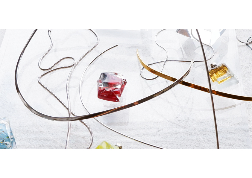 どんなチェーンにも簡単に通せるようにシルバーのバチカン(金具)をデザインし、ペンダントガラストップを制作しています。