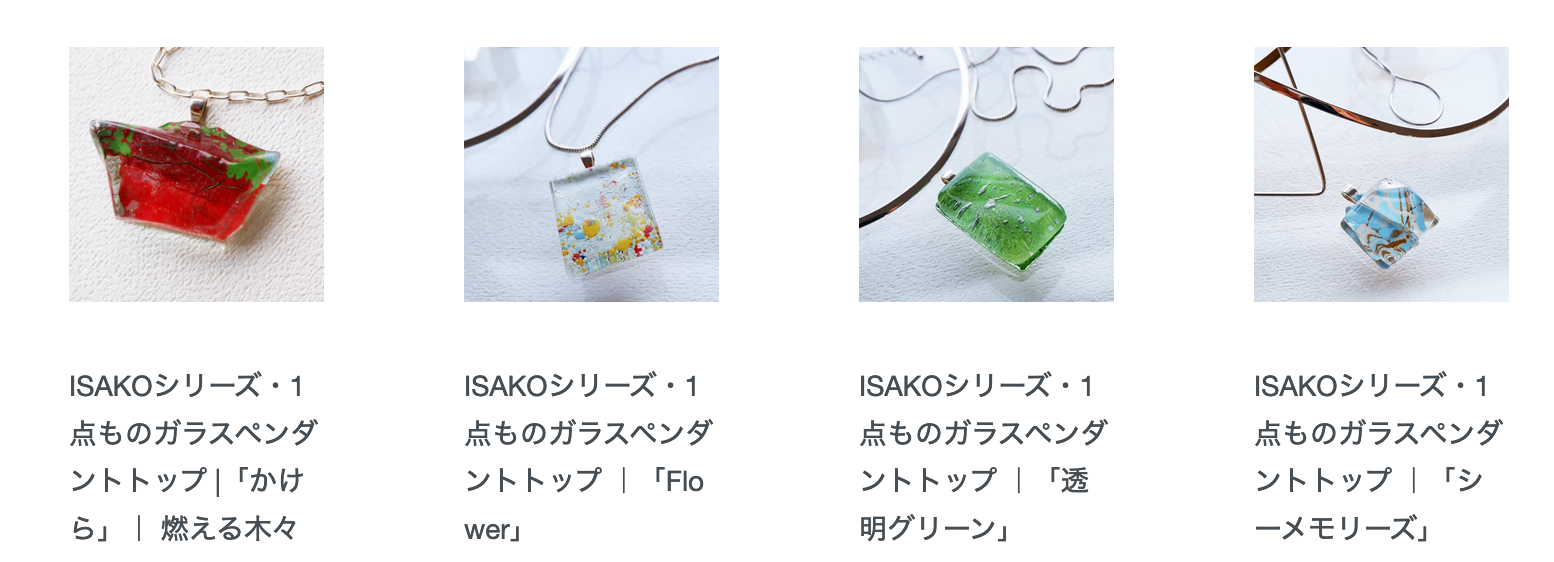 本人曰く「面倒臭がり屋のおしゃれさん」。ガラスの美しさに留まらず、簡単に、楽に着けられるアクセサリーへの配慮やアイデアも、Isakoの作り出すアクセサリーの人気の理由のひとつ。