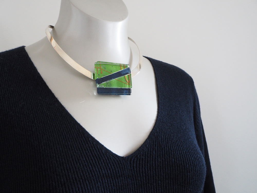 帯留めのような、凛と素敵なクリップガラスのシルバーチョーカー。