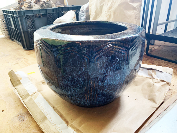 実は、実家の庭に放り出してあった懐かしい火鉢を見つけて、私の家に連れて来ました。