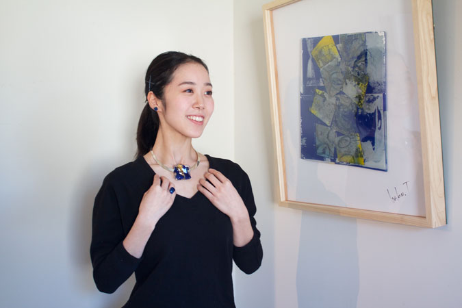 本人曰く「面倒臭がり屋のおしゃれさん」。ガラスの美しさに留まらず、簡単に、楽に着けられるアクセサリーへの配慮やアイデアも、Isakoの作り出すアクセサリーの人気の理由のひとつ。