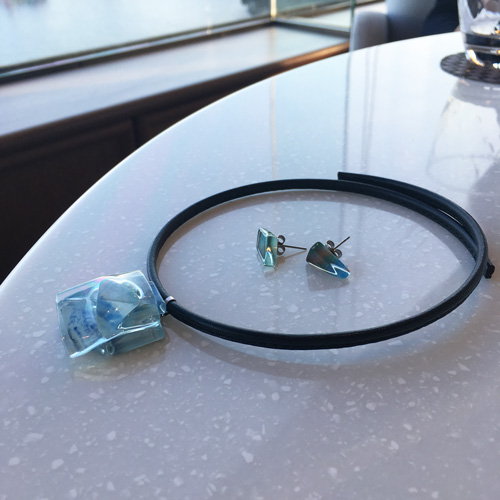 本人曰く「面倒臭がり屋のおしゃれさん」。ガラスの美しさに留まらず、簡単に、楽に着けられるアクセサリーへの配慮やアイデアも、Isakoの作り出すアクセサリーの人気の理由のひとつ。