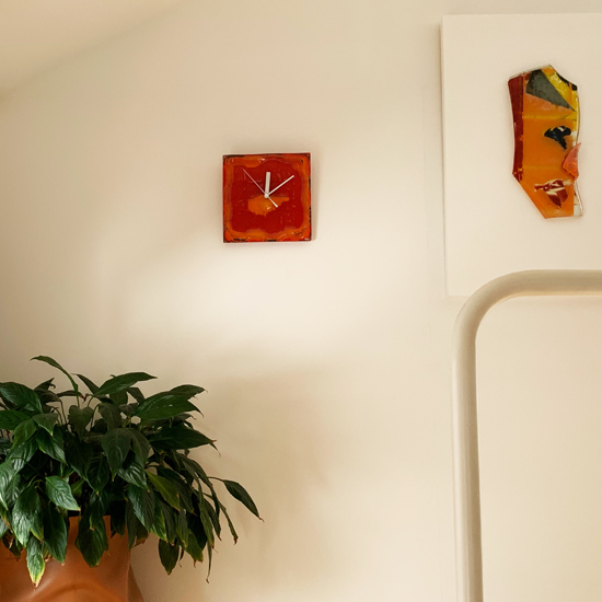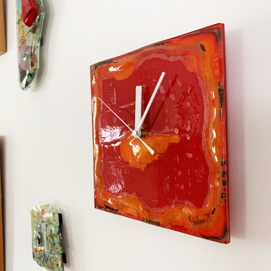 心のスクリーンに映る、あの赤、あの黒、あの橙。それを一枚のガラスに込めました。