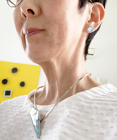 本人曰く「面倒臭がり屋のおしゃれさん」。ガラスの美しさに留まらず、簡単に、楽に着けられるアクセサリーへの配慮やアイデアも、Isakoの作り出すアクセサリーの人気の理由のひとつ。