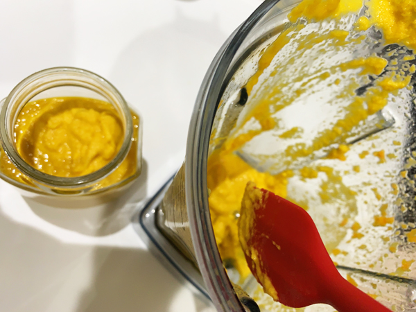 材料全てをミキサーに入れて混ぜて完成!→  保存容器へ