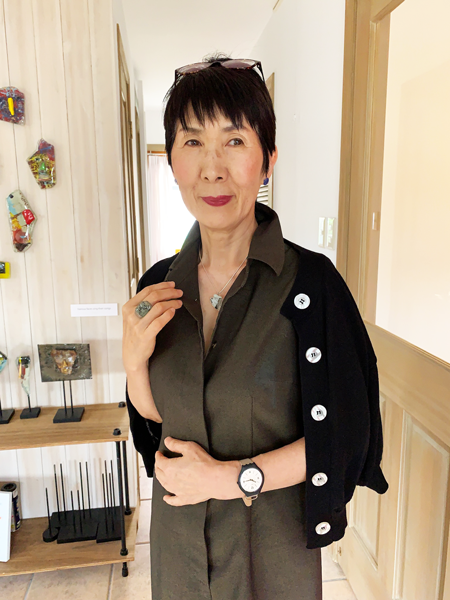 本人曰く「面倒臭がり屋のおしゃれさん」。ガラスの美しさに留まらず、簡単に、楽に着けられるアクセサリーへの配慮やアイデアも、Isakoの作り出すアクセサリーの人気の理由のひとつ。
