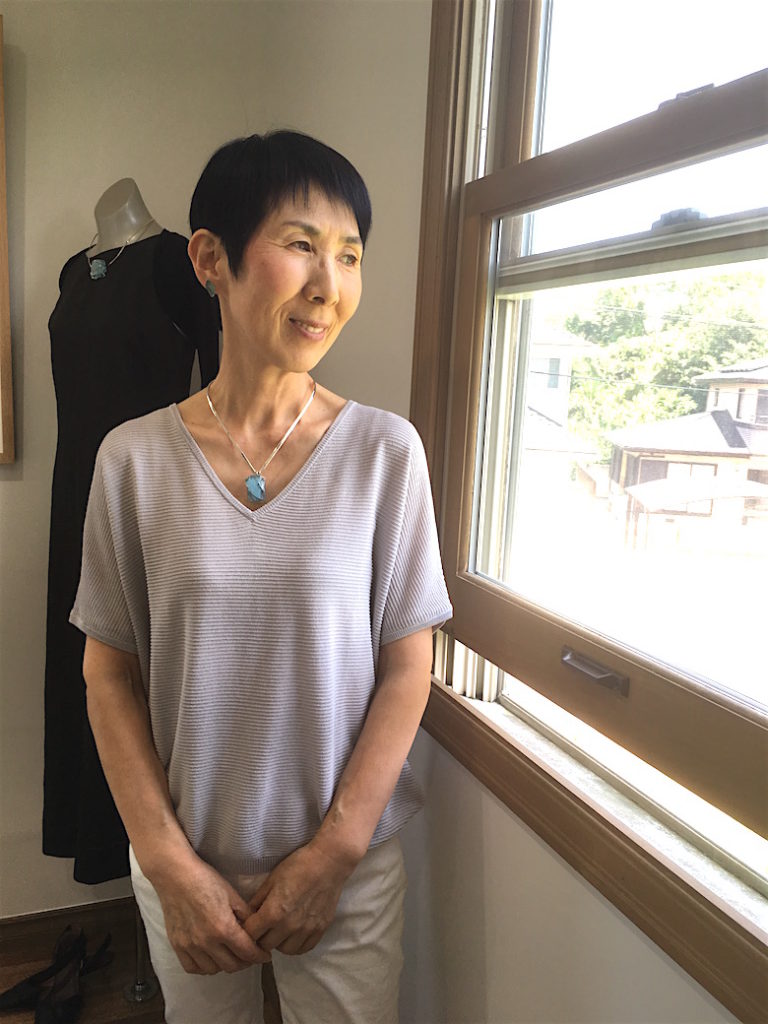 本人曰く「面倒臭がり屋のおしゃれさん」。ガラスの美しさに留まらず、簡単に、楽に着けられるアクセサリーへの配慮やアイデアも、Isakoの作り出すアクセサリーの人気の理由のひとつ。