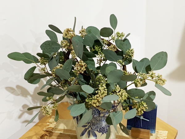 そして、部屋の中に飾りました。ユーカリの葉は虫もつかず、いい香りがして、インテリアにも抜群です。