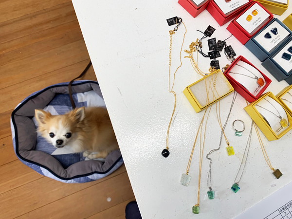 本人曰く「面倒臭がり屋のおしゃれさん」。ガラスの美しさに留まらず、簡単に、楽に着けられるアクセサリーへの配慮やアイデアも、Isakoの作り出すアクセサリーの人気の理由のひとつ。