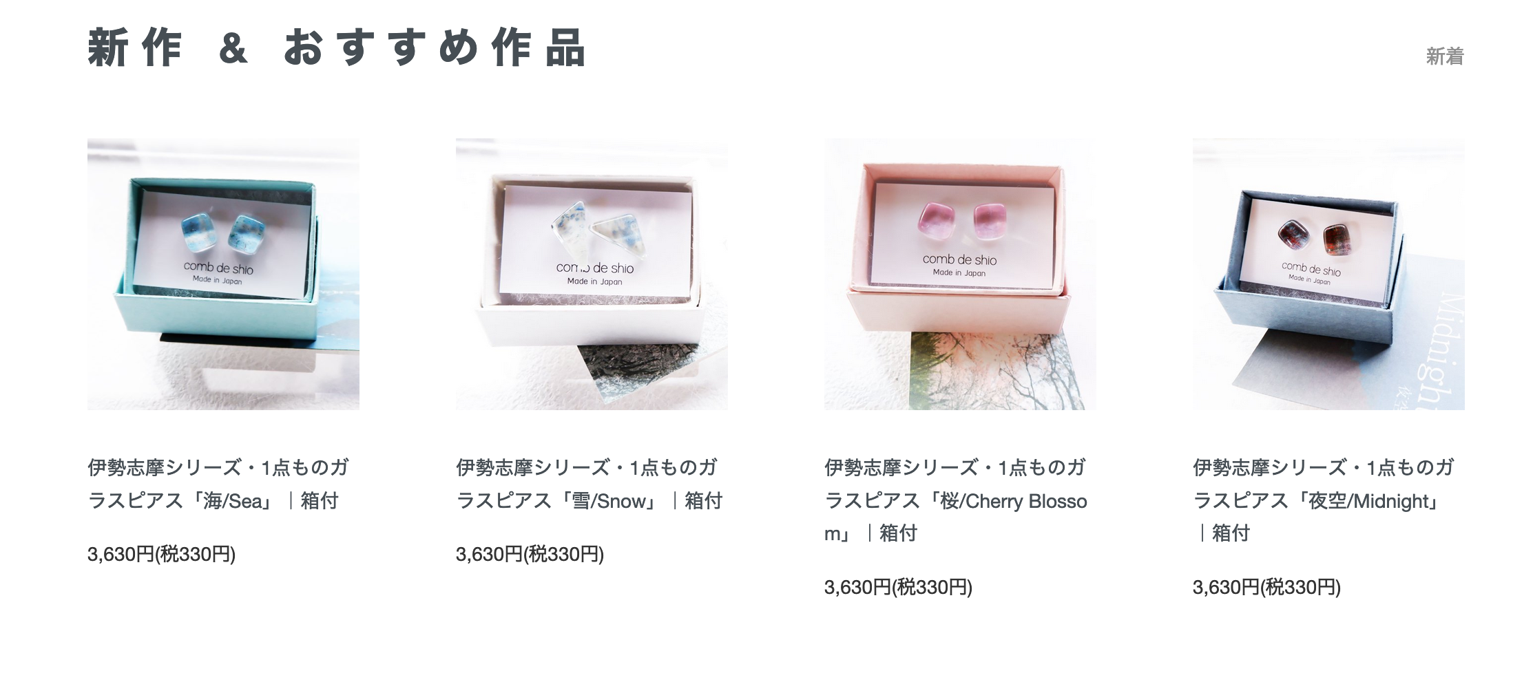 「伊勢志摩シリーズ」ピアスをたくさんオンラインショップに掲載しましたので、トップ画面の「新作 & おすすめ作品」をぜひご覧ください。