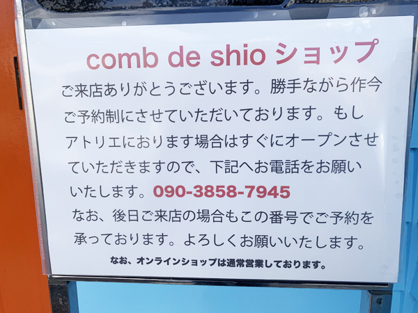 comb de shio ショップを予約制に致しました。